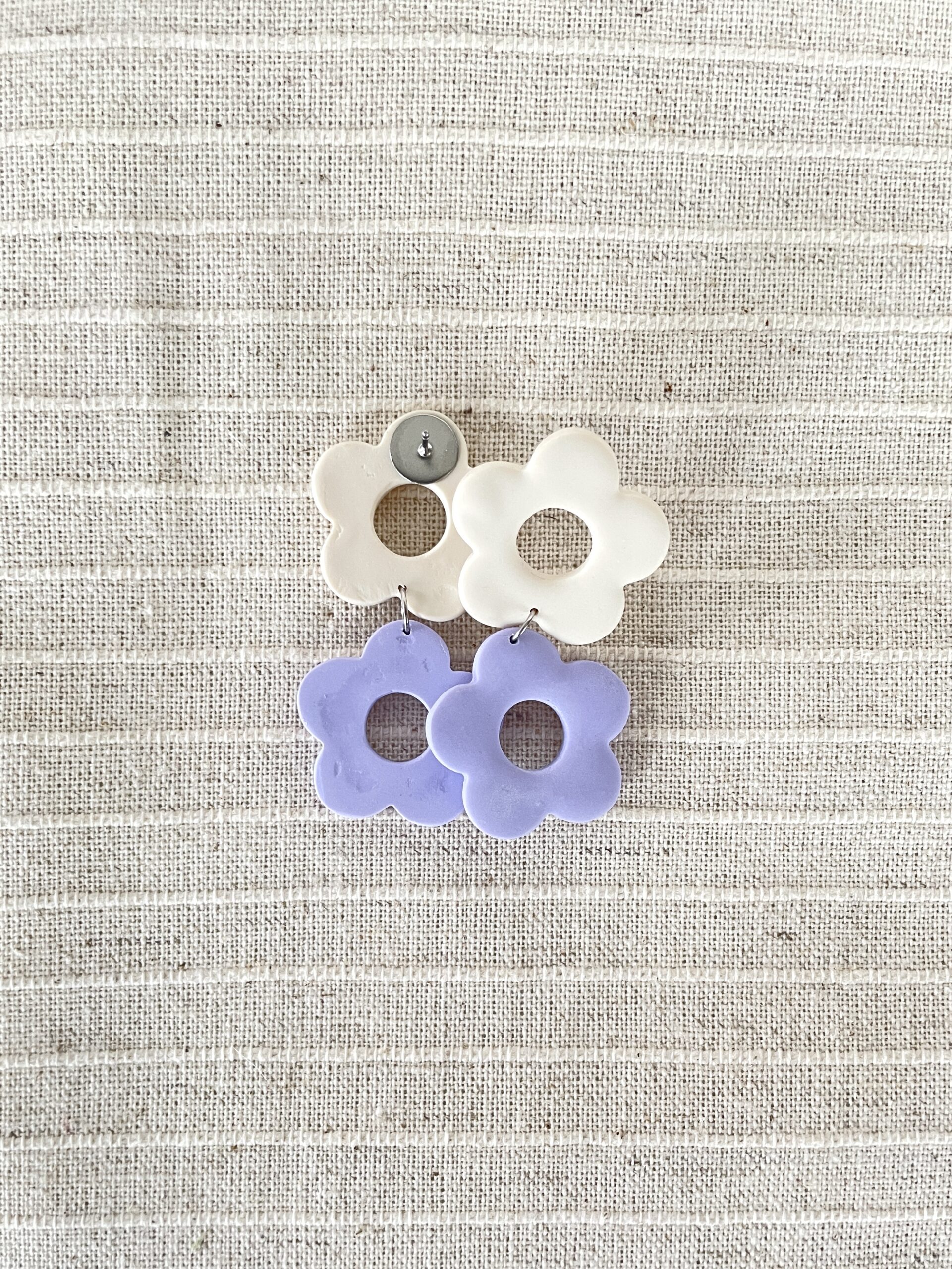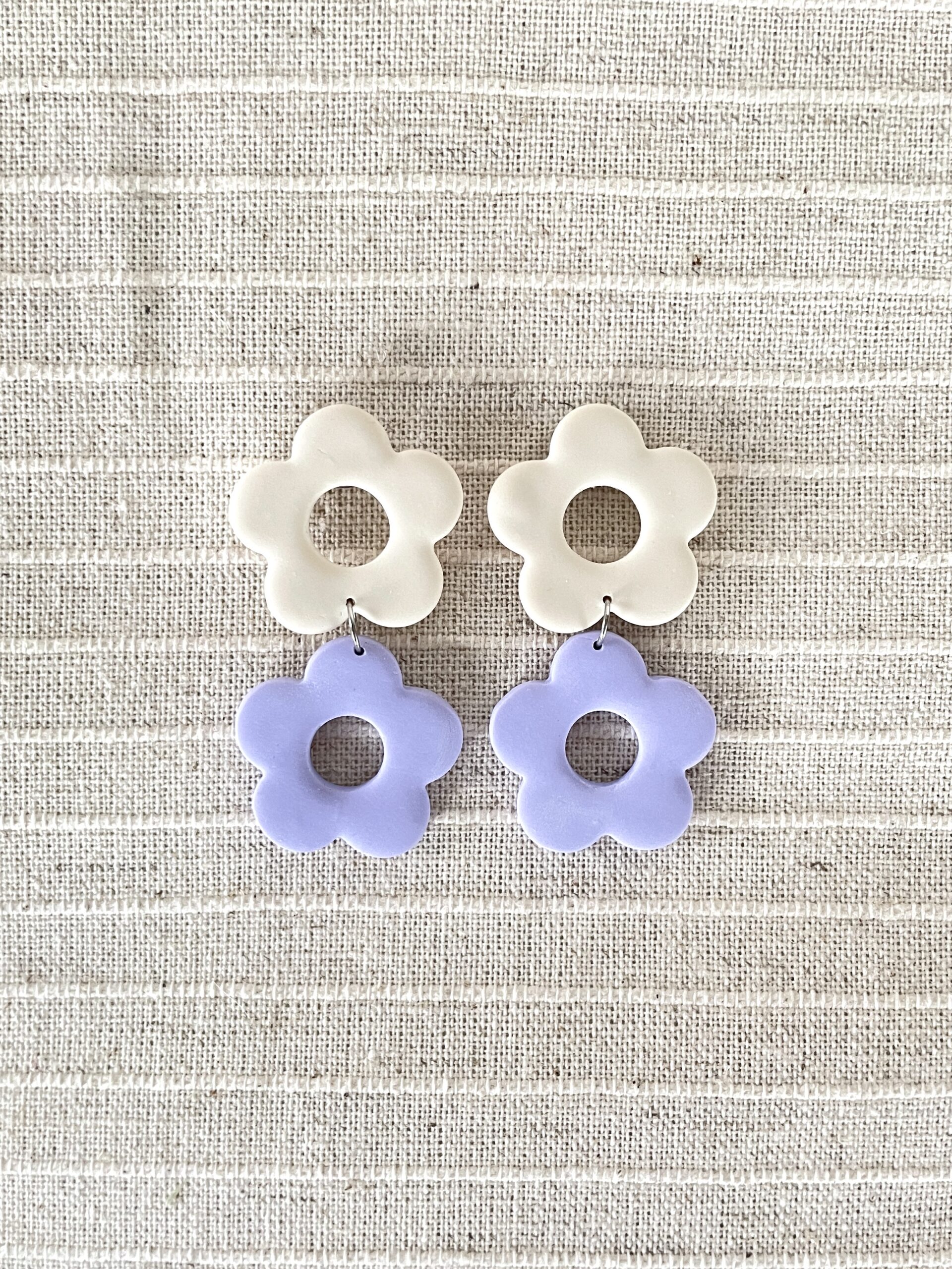 Te kolczyki tworzą subtelną, pastelową kompozycję, w której jeden kwiatek w kolorze ecru łączy się z wiszącym na nim drugim kwiatkiem w mlecznym fiolecie. Wykończenie jest matowe. Połączenie delikatnych, neutralnych barw z fioletem nadaje całości lekkości i spokoju, a jednocześnie wprowadza subtelny akcent charakteru i wyjątkowości. Pasują zarówno do codziennych, minimalistycznych stylizacji, jak i do bardziej wyrafinowanych, subtelnych zestawów. „Dzień Rozkwitu” to propozycja dla osób, które cenią delikatność, pastelowe akcenty i subtelny, indywidualny charakter biżuterii.